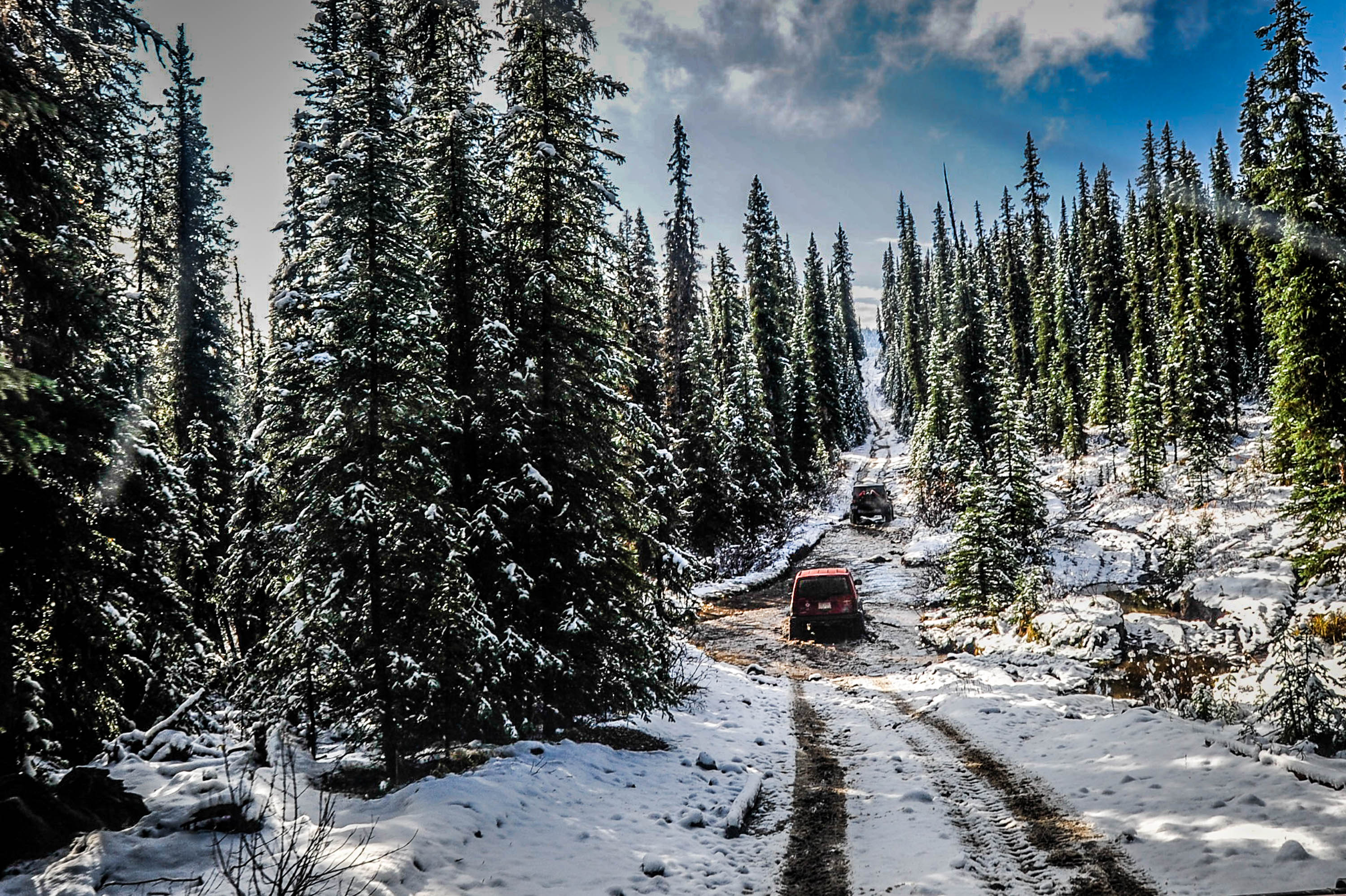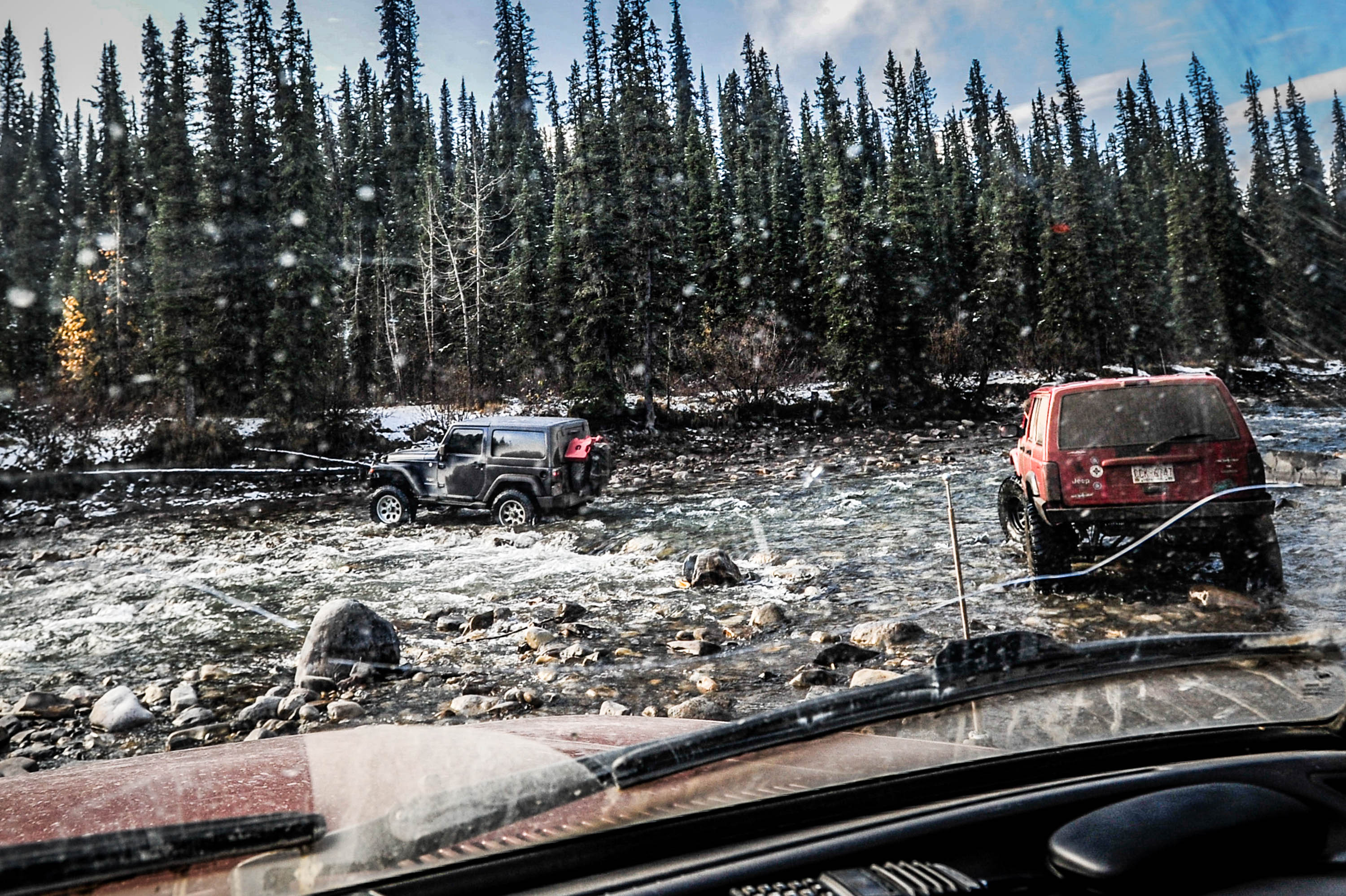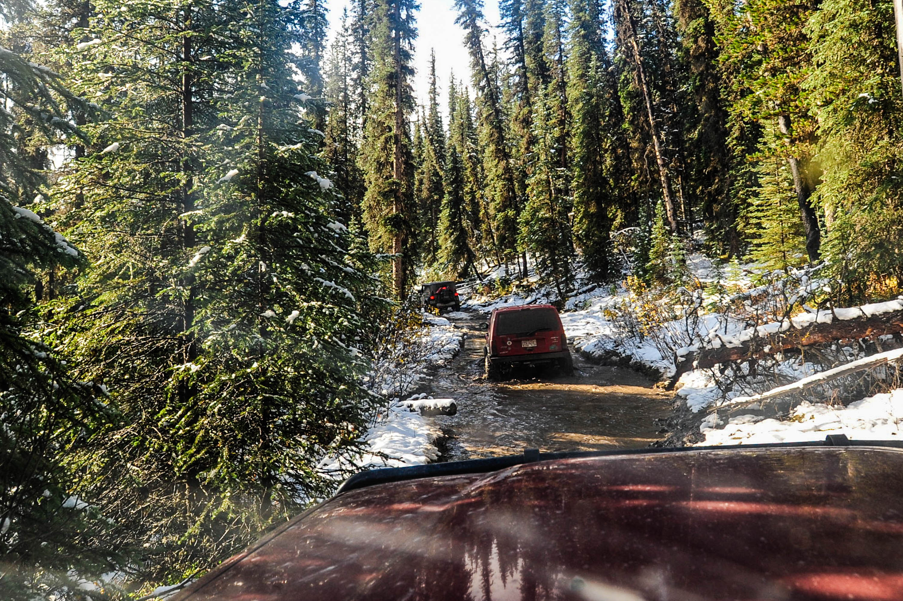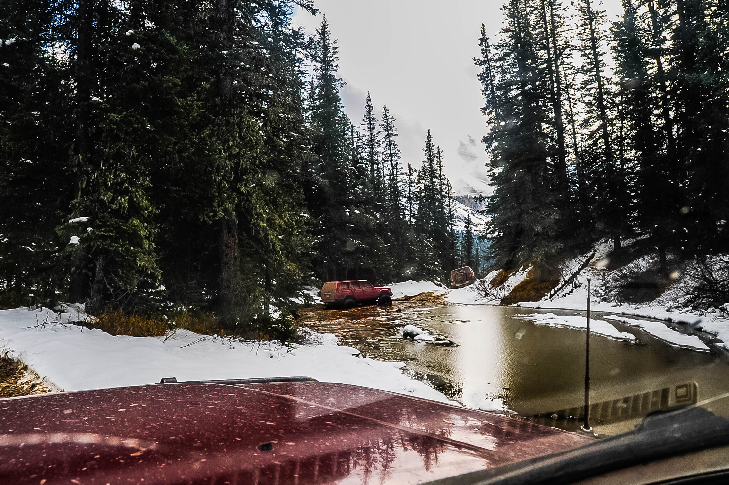 Road trip to Ruby Falls, Alberta on September 30, 2023.  Driving into Ruby Falls isn’t for the faint of heart, or for cars (4×4 truck is a necessity). I drive a 1991 Toyota Landcruiser FJ80, and joined a Jeep YJ, and a Jeep Cherokee. The other drivers were experienced off-roaders, and one had done the drive several times. Prior to the trip, I asked  – “Is off-road driving experience necessary for this trip ?”. The trip guide, replied, ‘not really’.   I now know !.