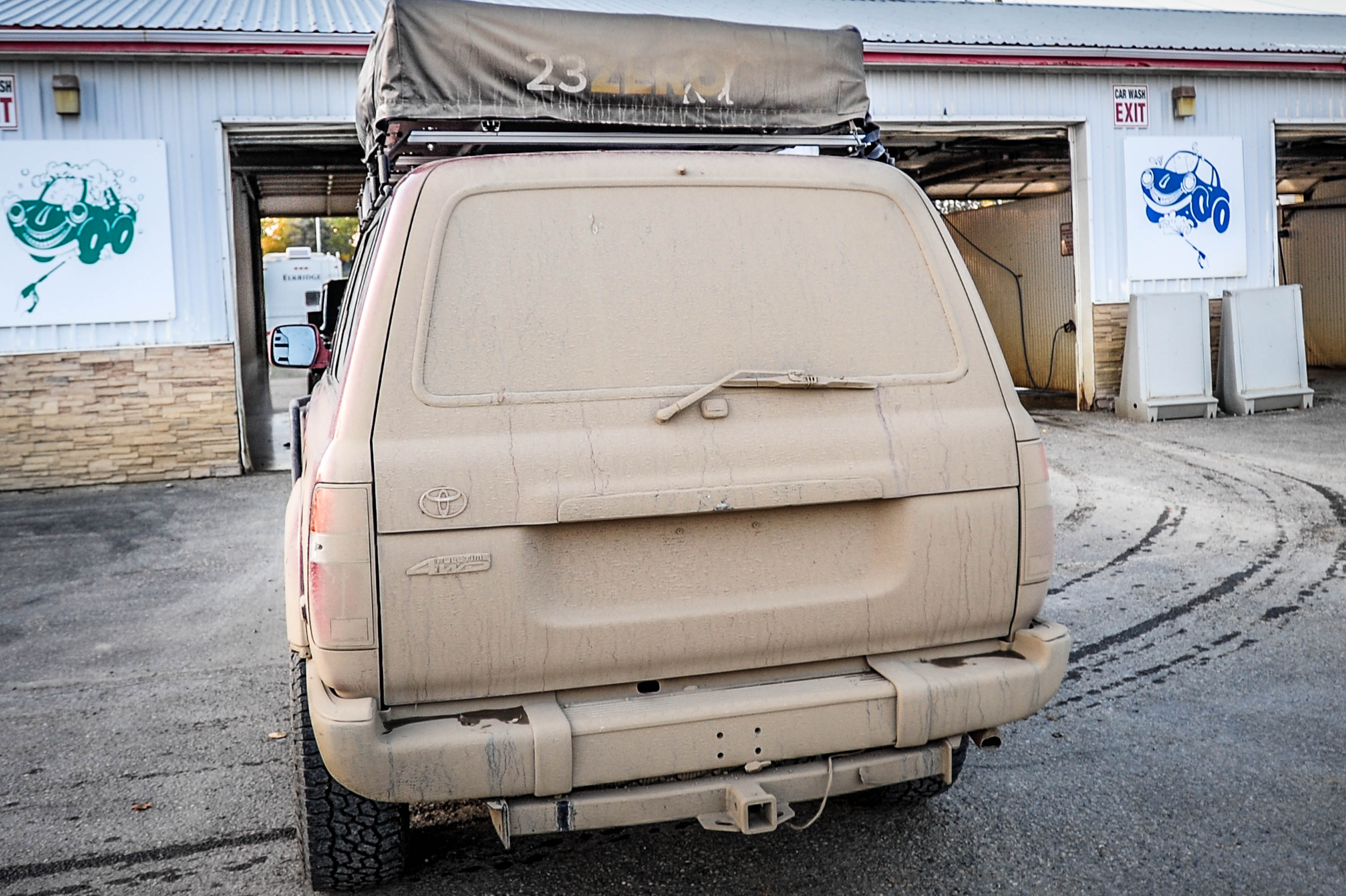 Pictures: Nice and clean before the trip …..to time for a wash, and there is a licence plate somewhere under that mud !