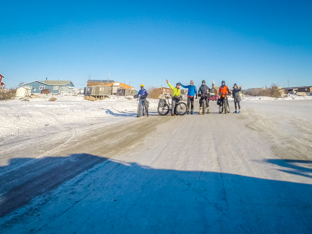 The next morning after waking up in warm beds, we had a leisurely bike tour around Gameti and packed up our gear in preparation for the drive home. Shana and Maggie had driven from Yellowknife to drive us back to our vehicles in Bechoko. They had been delayed as the road we had biked on the previous day had been closed due to snowdrifts. They had brought beer, fresh fruit and snacks for the drive home. By 9:30pm we had transferred gear and bikes to the other vehicles and were heading back to Yellowknife. Two hours later (total distance of 100km) we were home – Yes – Exhausted and happy.