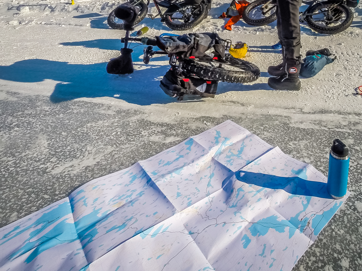 In November 2017 we gathered for the first planning session. Ewan had completed a similar bike trip along the Mackenzie Highways a year earlier – the rest of us – winter bike packing beginners. The maps were unrolled on the kitchen table showing the different winter road options, over portages and frozen lakes. We settled on the Bechoko to Gameti route, a total of 194 kilometers. With climate change, ice roads are slowly becoming a thing of the past; more and more are being replaced by all-weather roads. From then on Bob, Amanda and I started depleting our bank accounts to buy winter camping gear including new -40C sleeping bags, winter tents and sleeping mats.