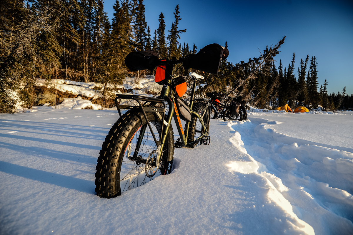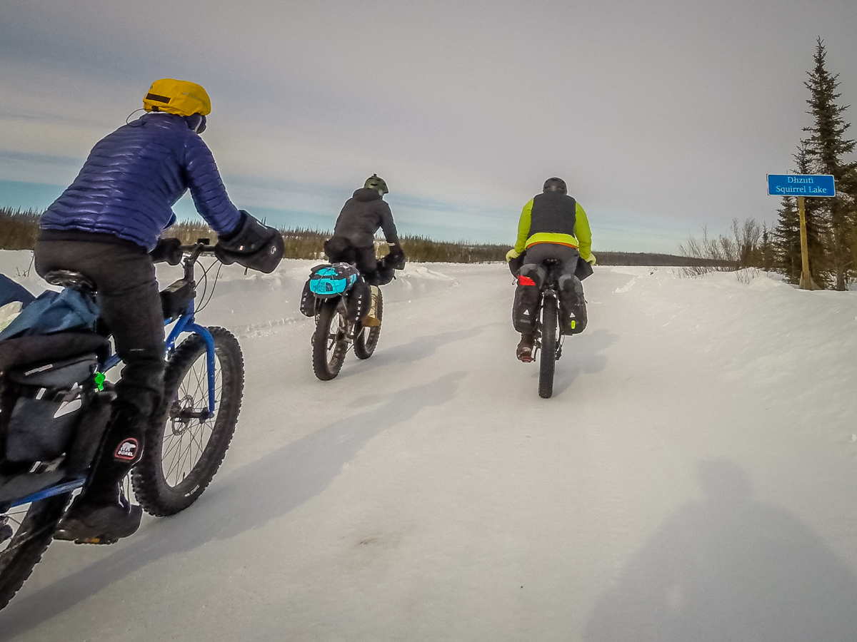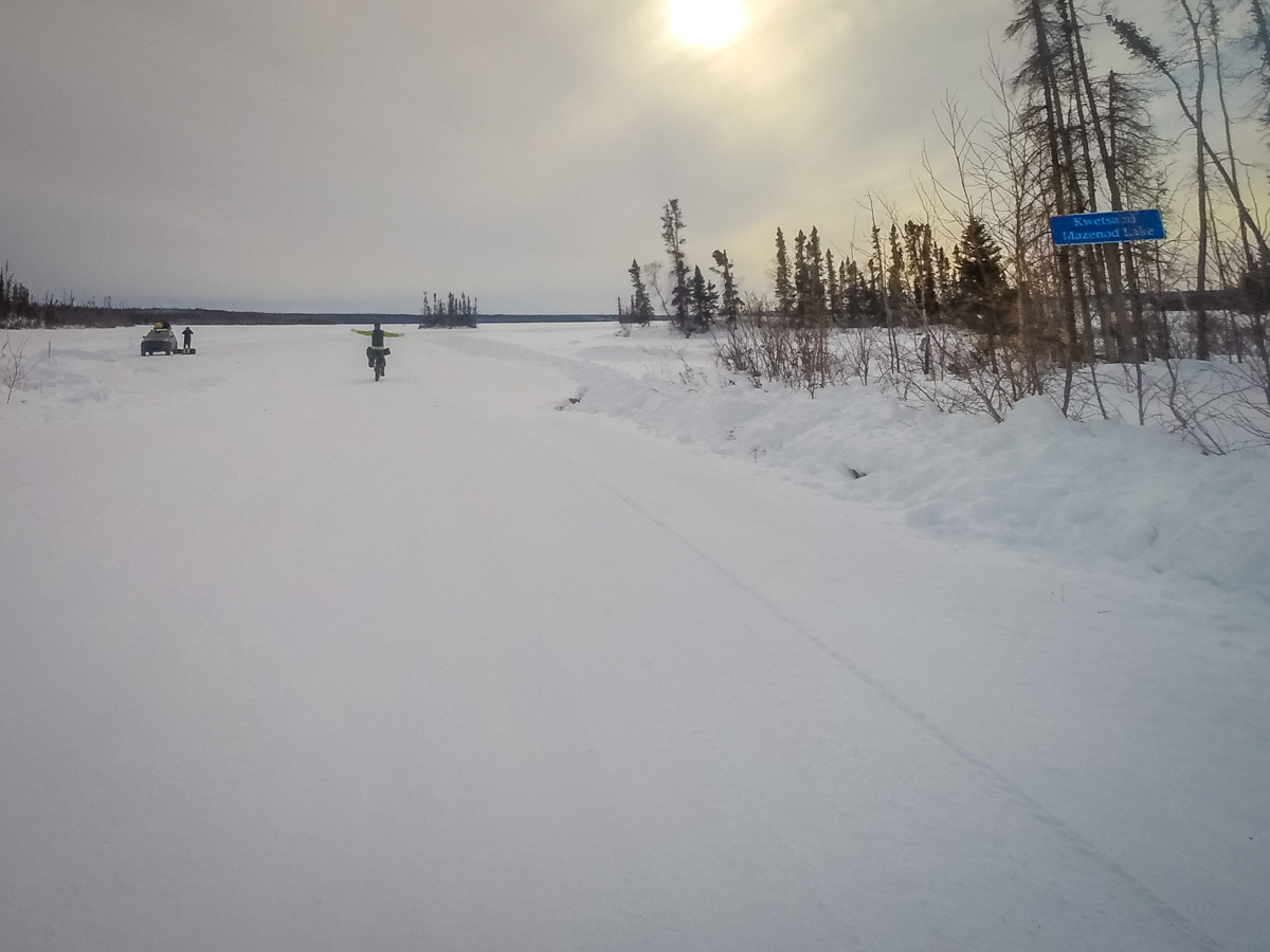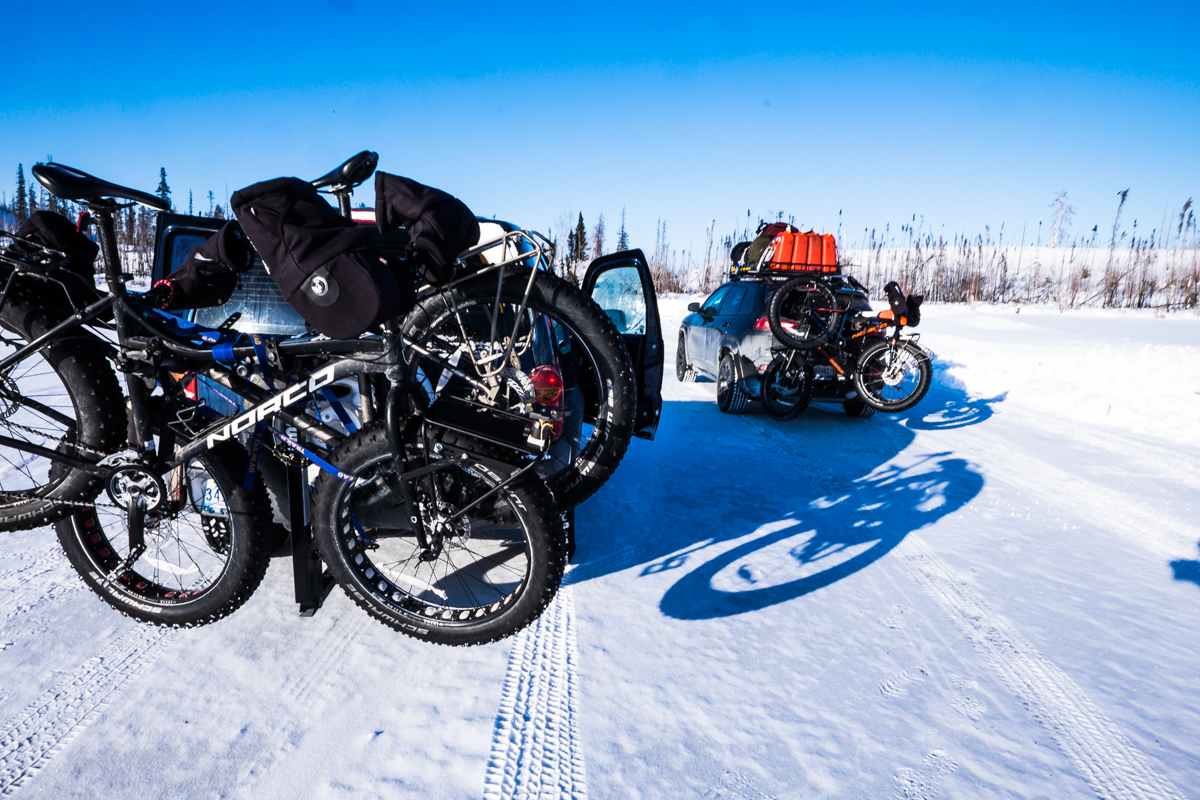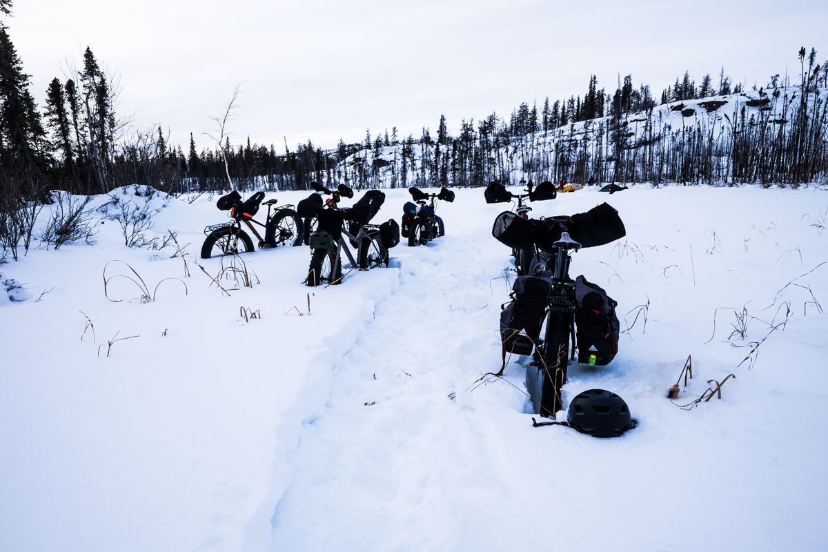With the trucks loaded with bikes, food, camping gear, food and extra clothes, we began the one hour drive to Bechoko. A three day, 194km fatbike adventure on winter roads begins.