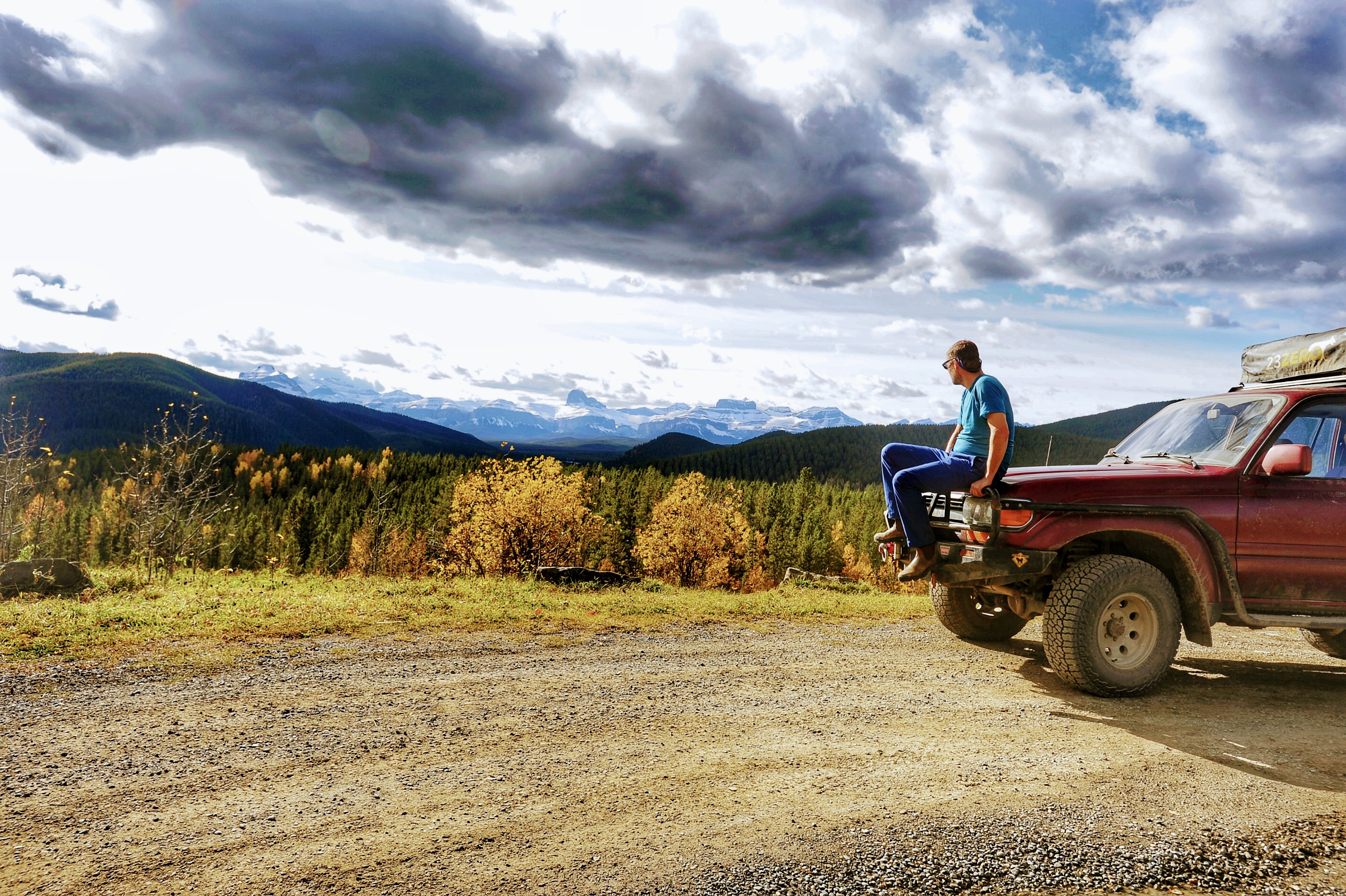 Ask a photographer to pick their best images from a solo two week roadtrip in Alberta and BC. Humm. I took thousands of photos with my ancient Nikon D700 and Samsung cell phone. I was traveling in my ancient 1991 FJ80 Toyota Landcruiser. Fall colors were absolutely amazing – perfectly timed, and there was almost no one else on the road. I took the Forestry Trunk Road (Alberta #40 / #732) on and off from Hinton to Coleman. Details in previous posts.